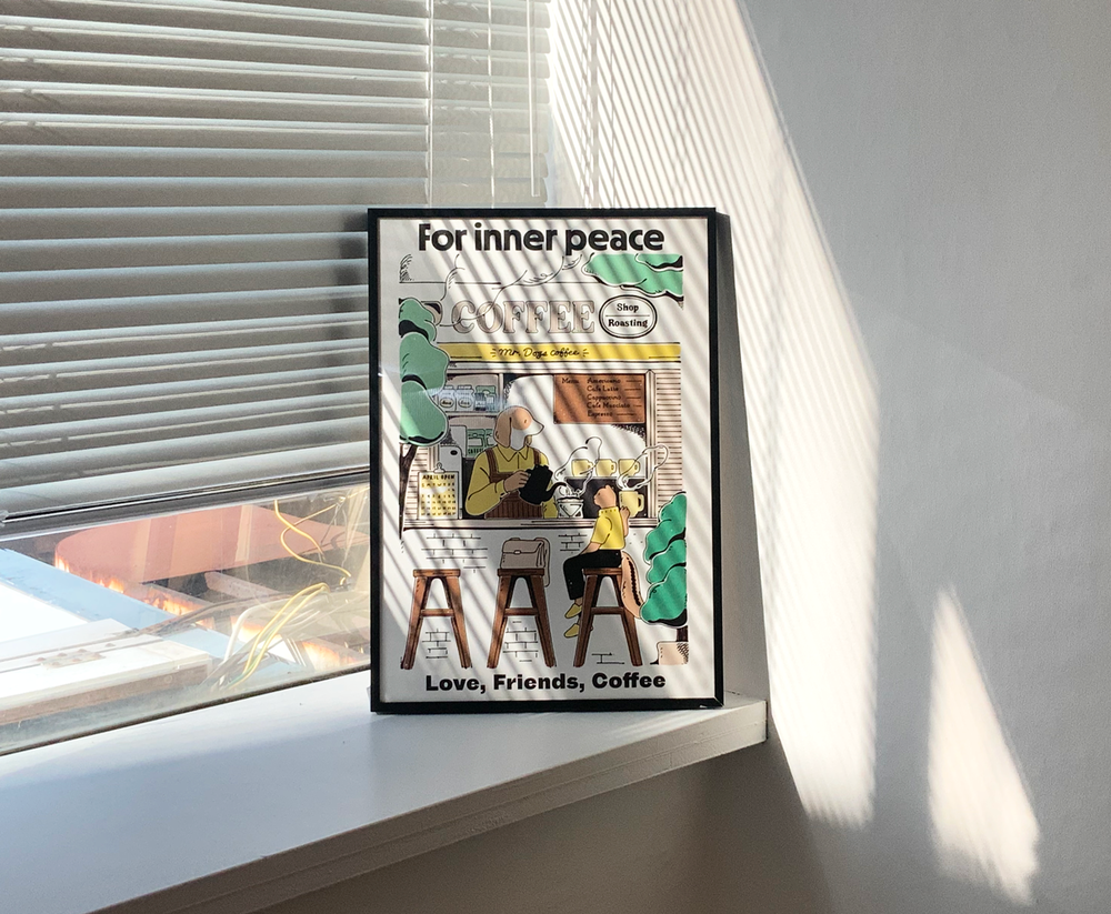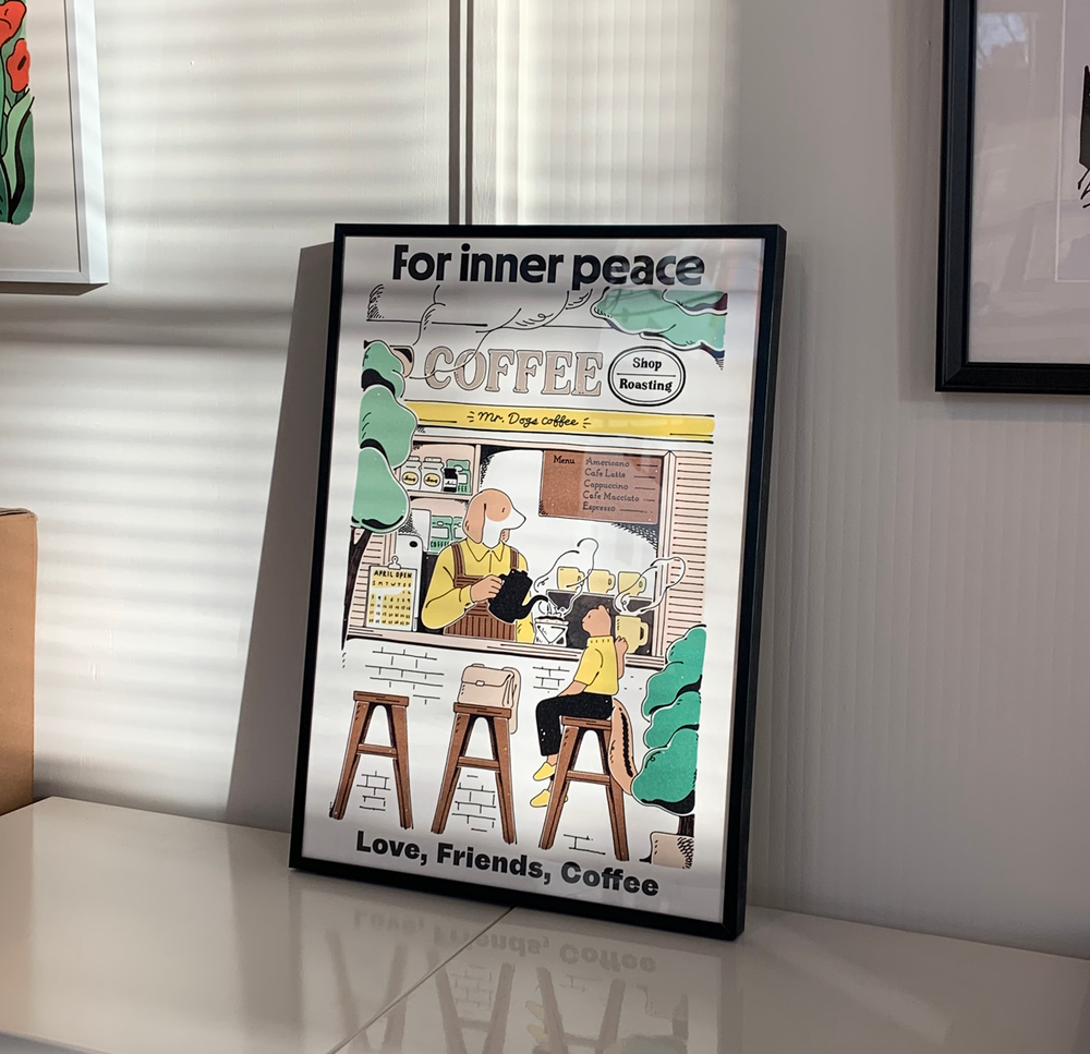 포인트컬러가 있는 담백한 무드의 일러스트 포스터입니다. 어디에 두느냐에 따라 공간의 포인트가 될 수도, 공간의 일부가 될 수 도 있습니다. 액자에 넣어 포인트가 필요한 바닥에 기대어 세워두거나, 벽에 걸기 좋습니다. 마스킹테이프를 활용해 벽에 붙이기에도 좋은 중량의 종이로 활용하기 좋습니다. 특히 블랙컬러의 액자가 잘 어울립니다.