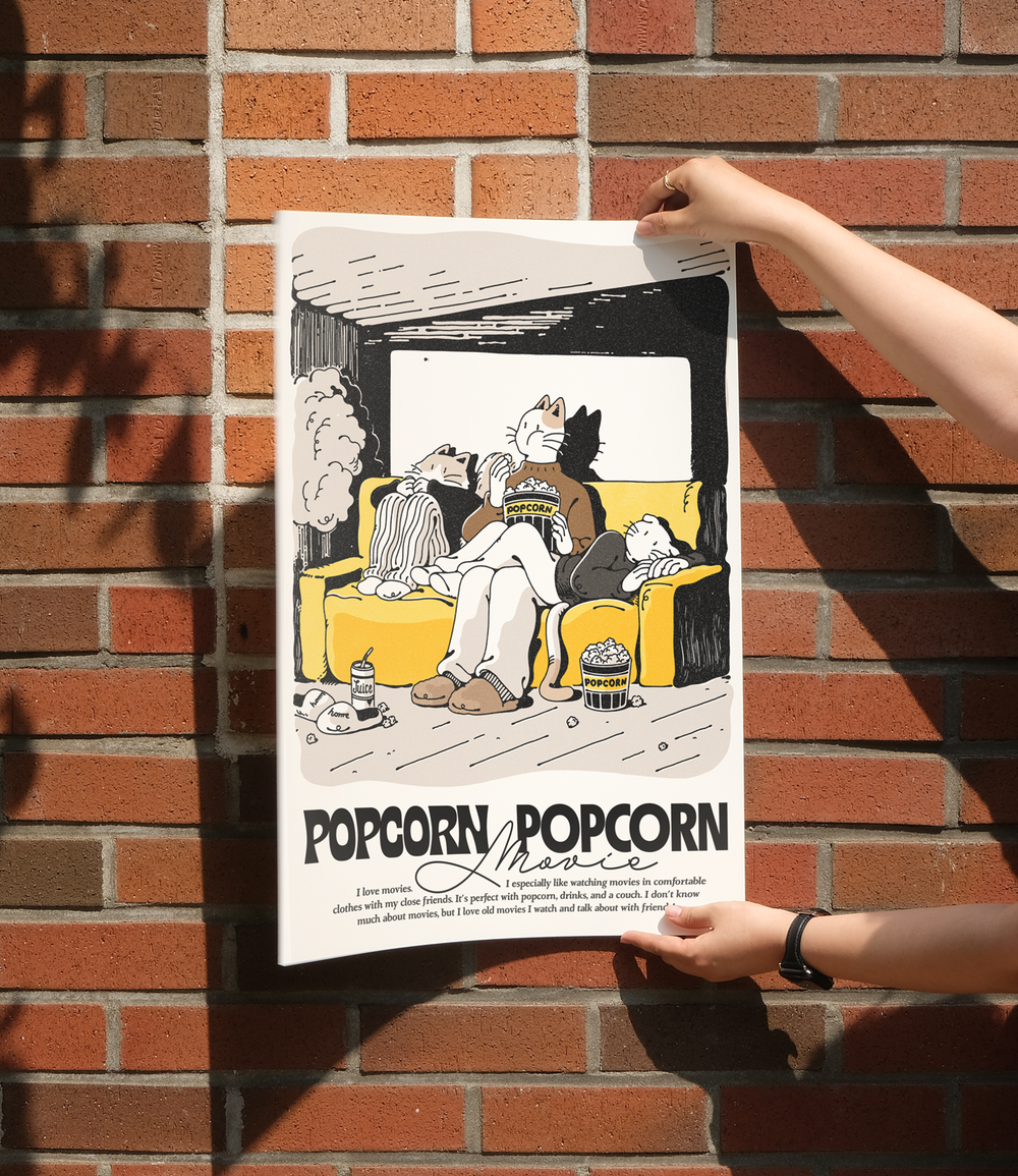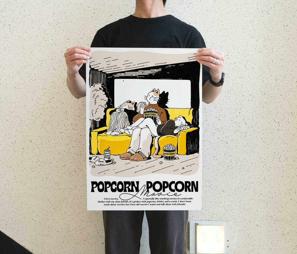 포인트 컬러가 있는 담백한 무드의 일러스트 포스터입니다. 장소에 따라 공간의 포인트가 될 수도, 조화로운 일부가 될 수도 있습니다.