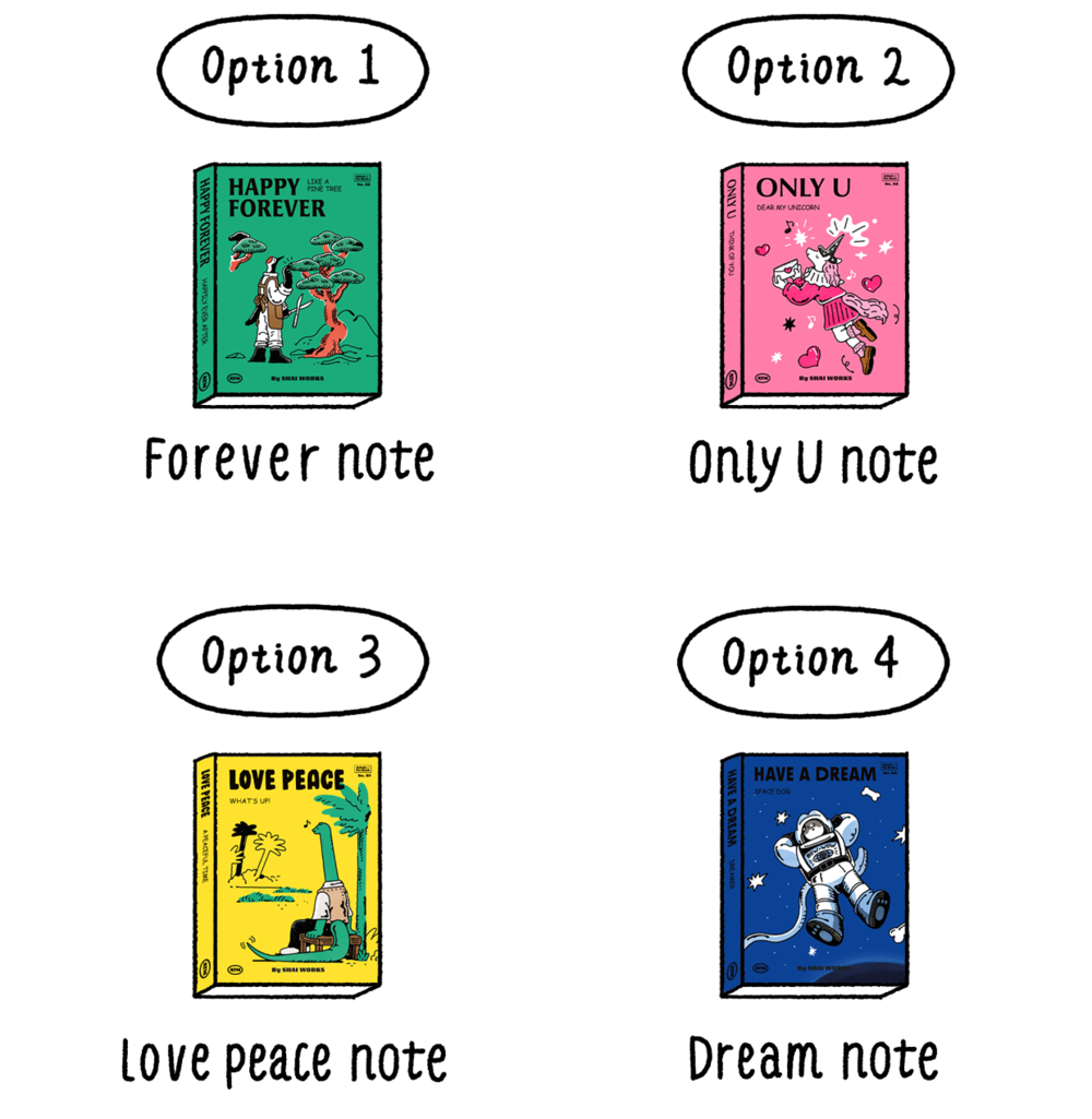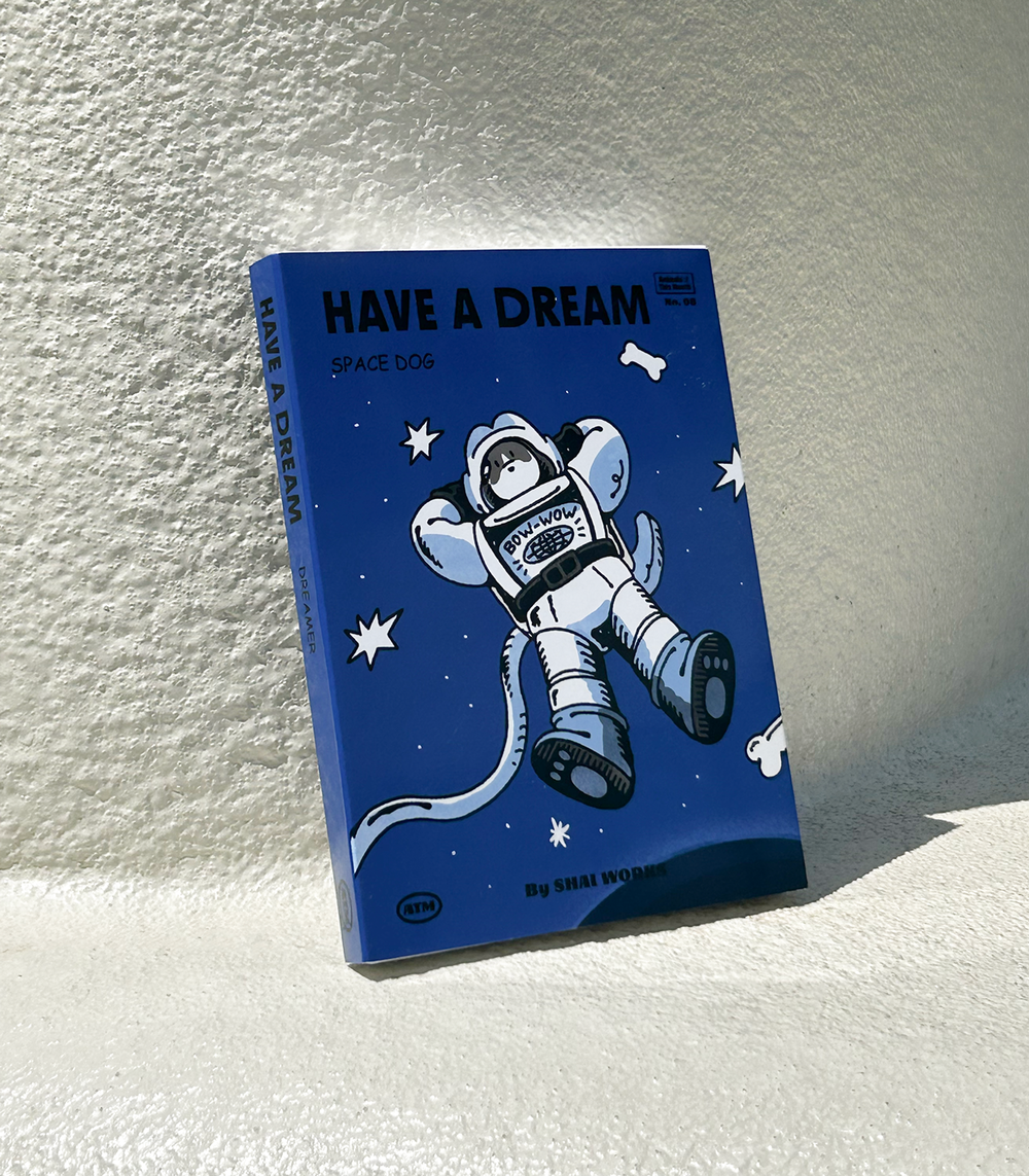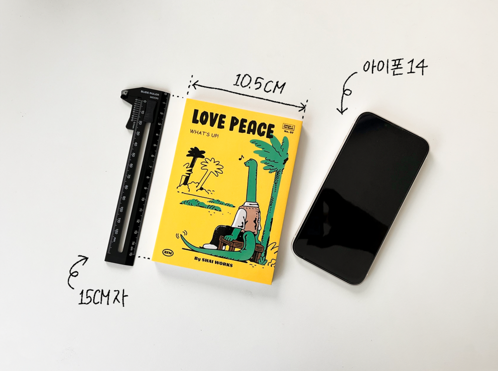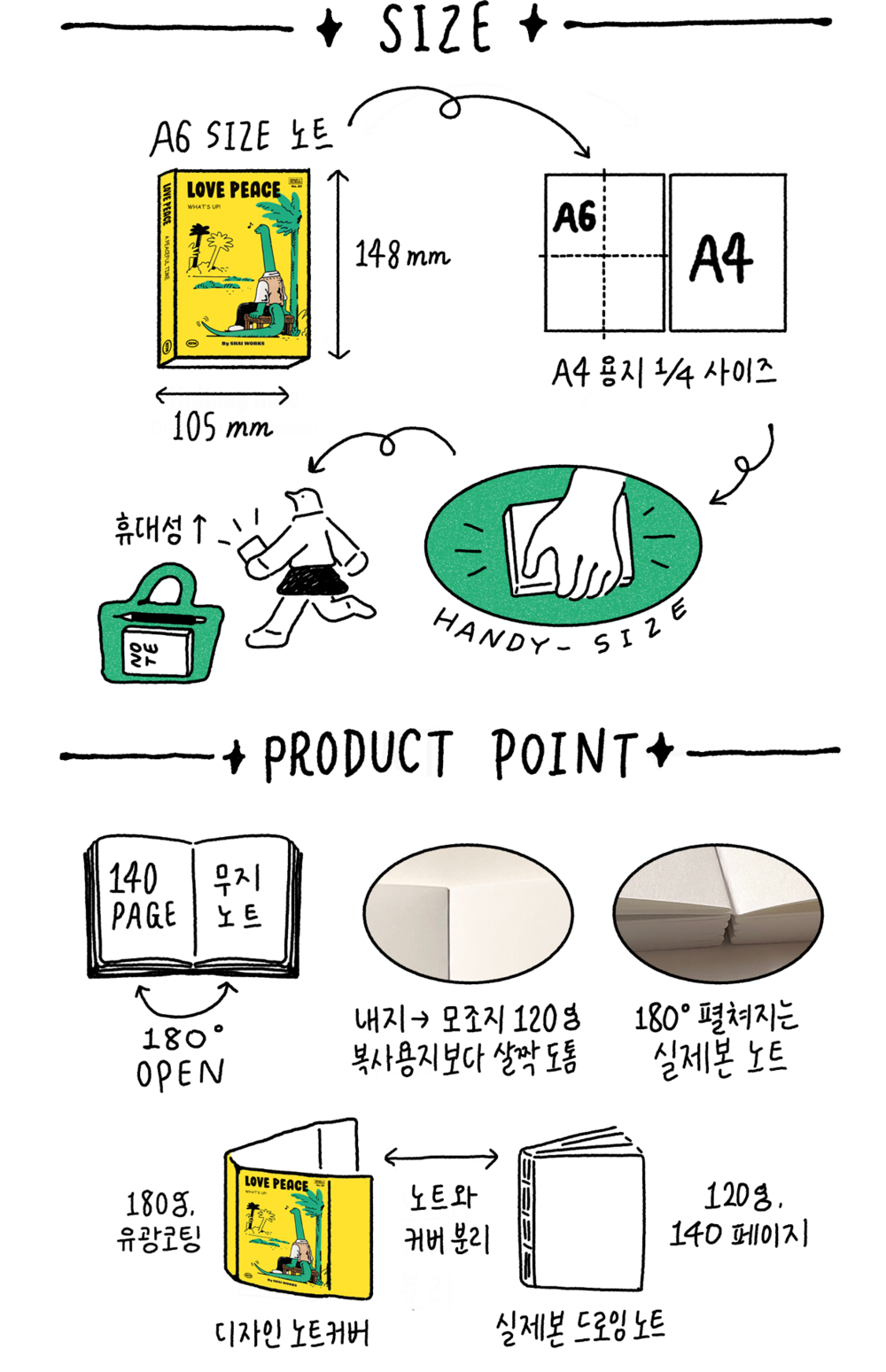 노트는 180도 펼쳐지는 실제본 노트로, 책처럼 종이 커버를 따로 씌우는 방식으로 제작되었습니다. (노트와 커버 완전 분리)