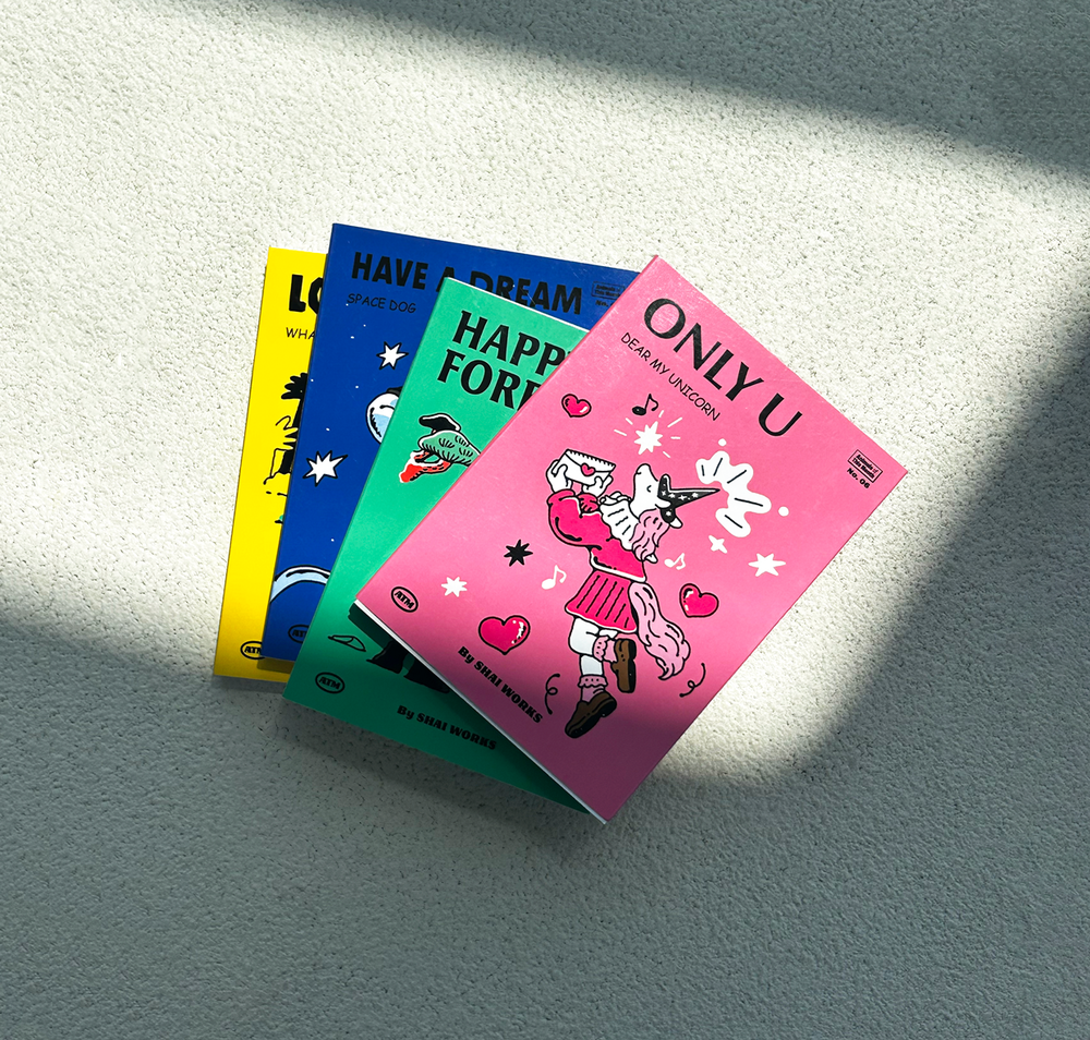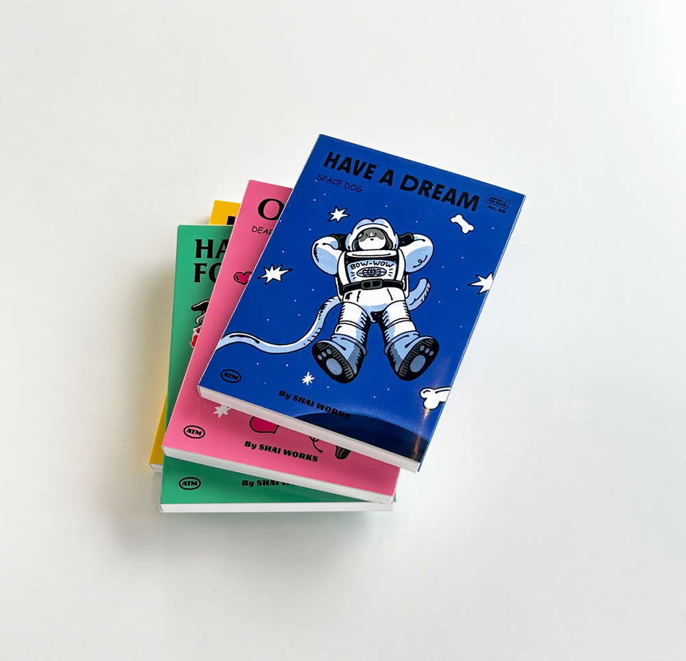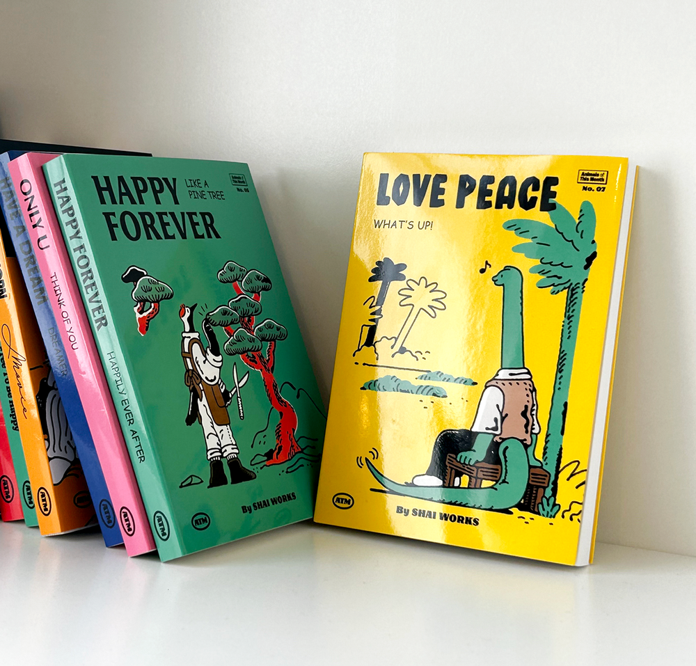 기존의 A.T.M 포스터 일러스트와 비교하면 러프한 드로잉이 매력적입니다. 4권 세트로 꽂아두면 인테리어 오브제로도 좋습니다.