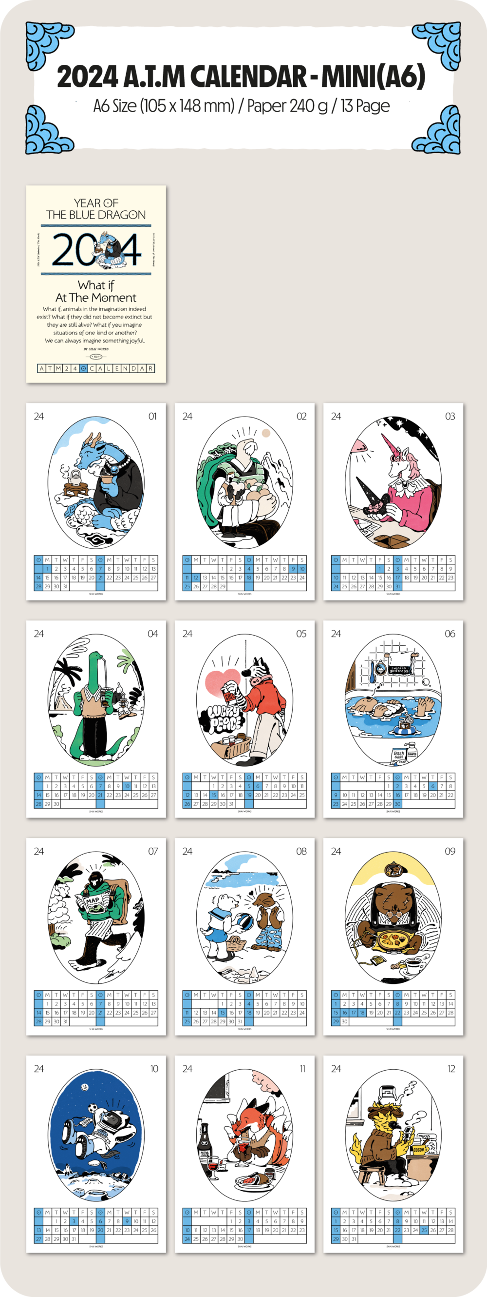 2024 A.T.M Calendar - mini(A6)는 1년동안 가까이에 두고 보기좋은 엽서 사이즈로 만든 낱장 캘린더로, 어디든 편하게 활용하기 좋습니다.