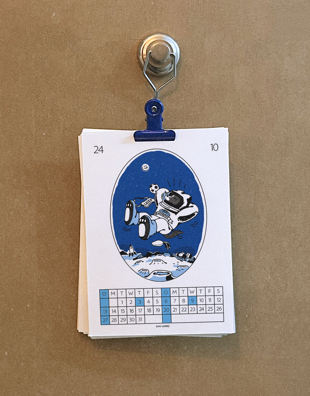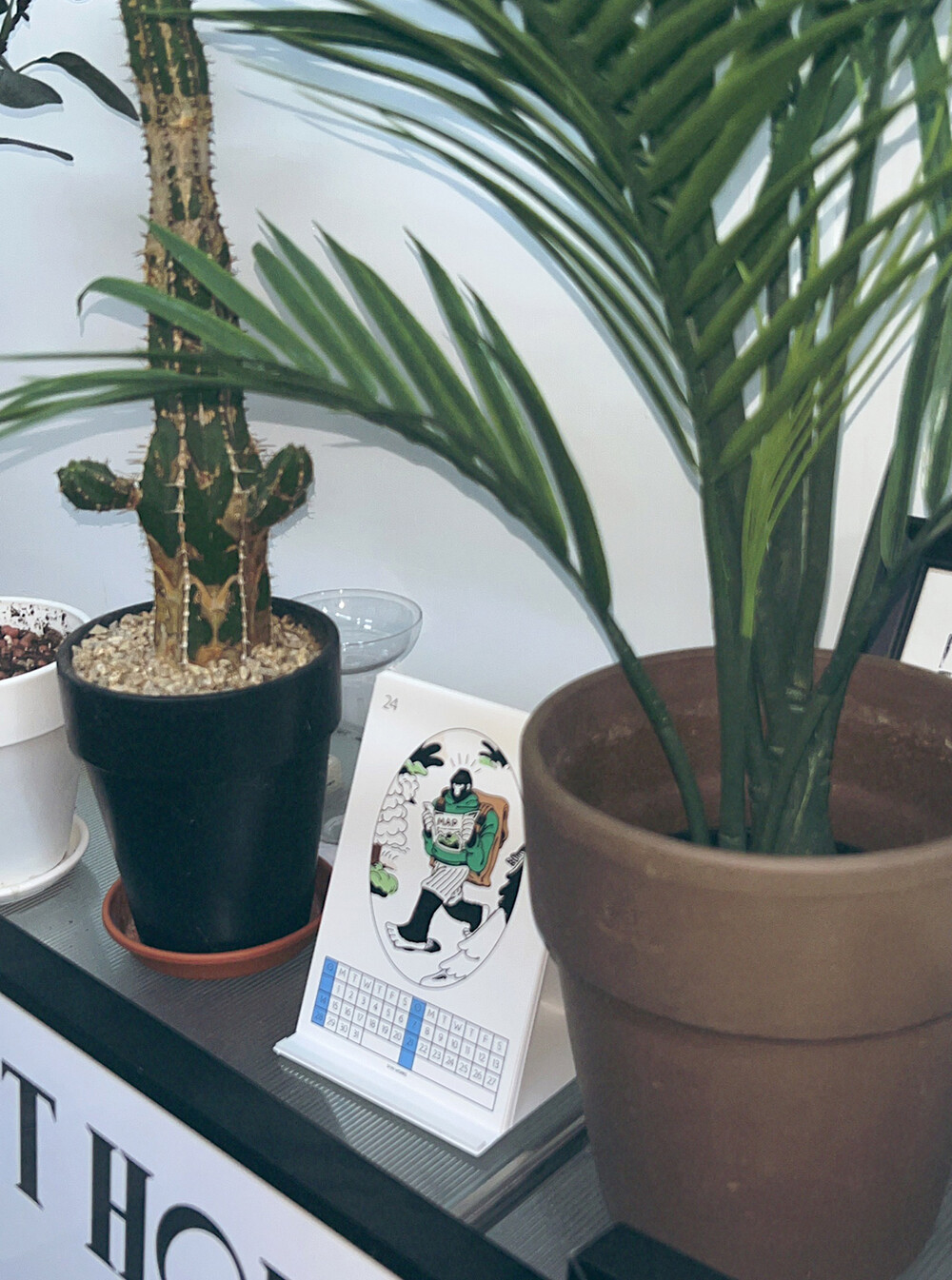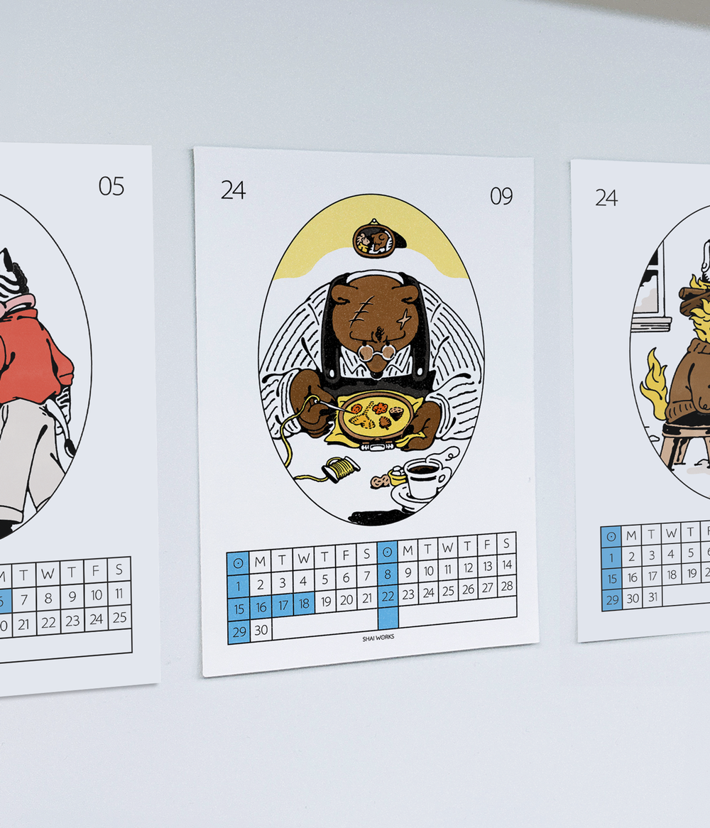 A.T.M 캘린더는 포인트 컬러와 담백한 무드의 일러스트가 포인트로, 어디에 두느냐에 따라 공간에 무난한 스며들어 배경이 되거나 공간의 포인트가 될 수 도 있습니다. 낱장으로 포스터처럼 활용하셔도 좋으며, 액자에 넣어 인테리어에 무드를 더하기 좋습니다.
