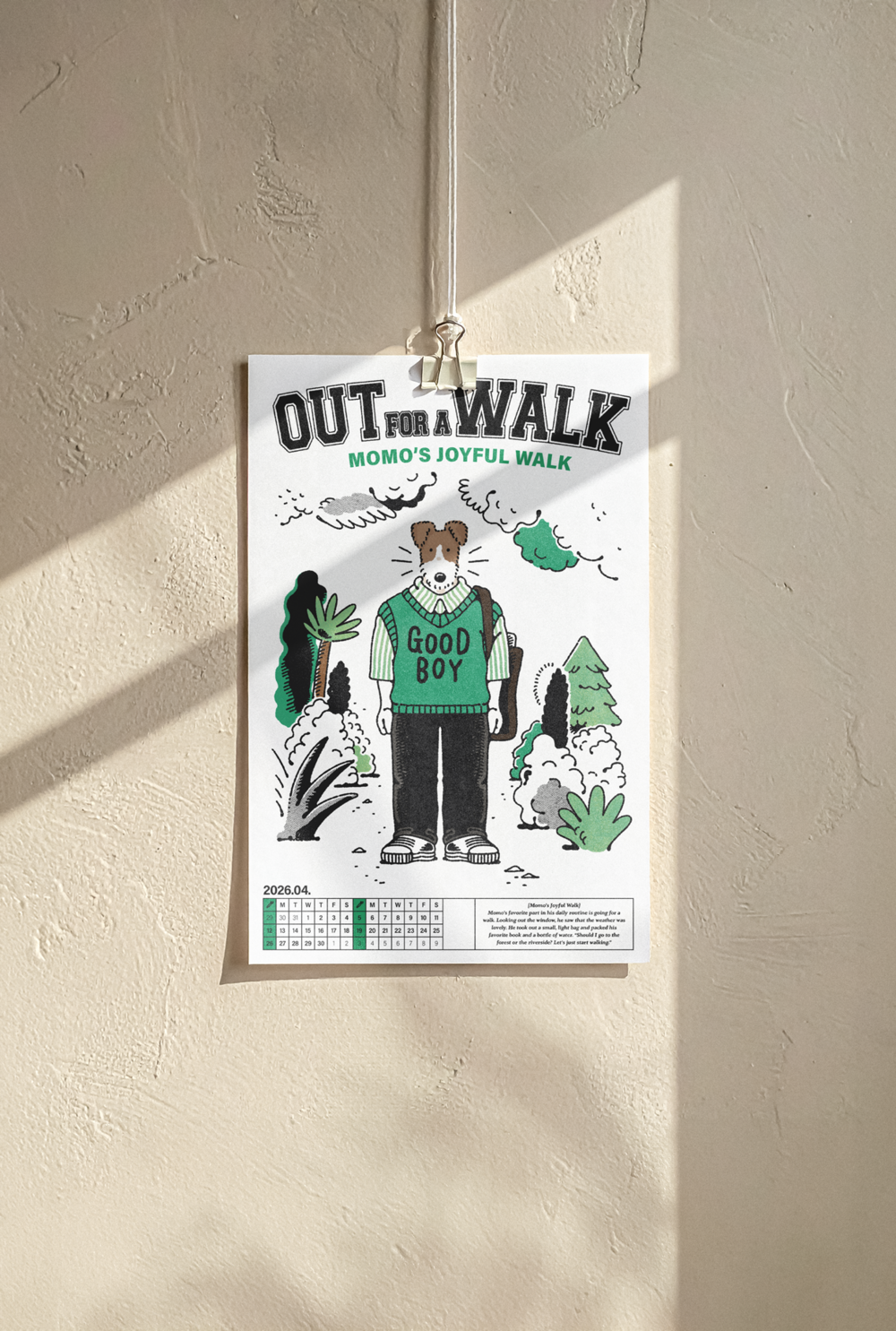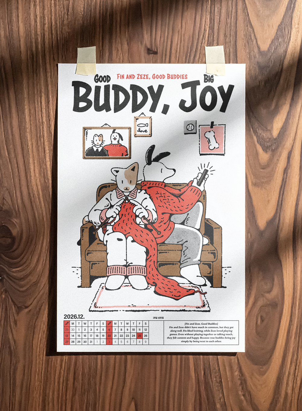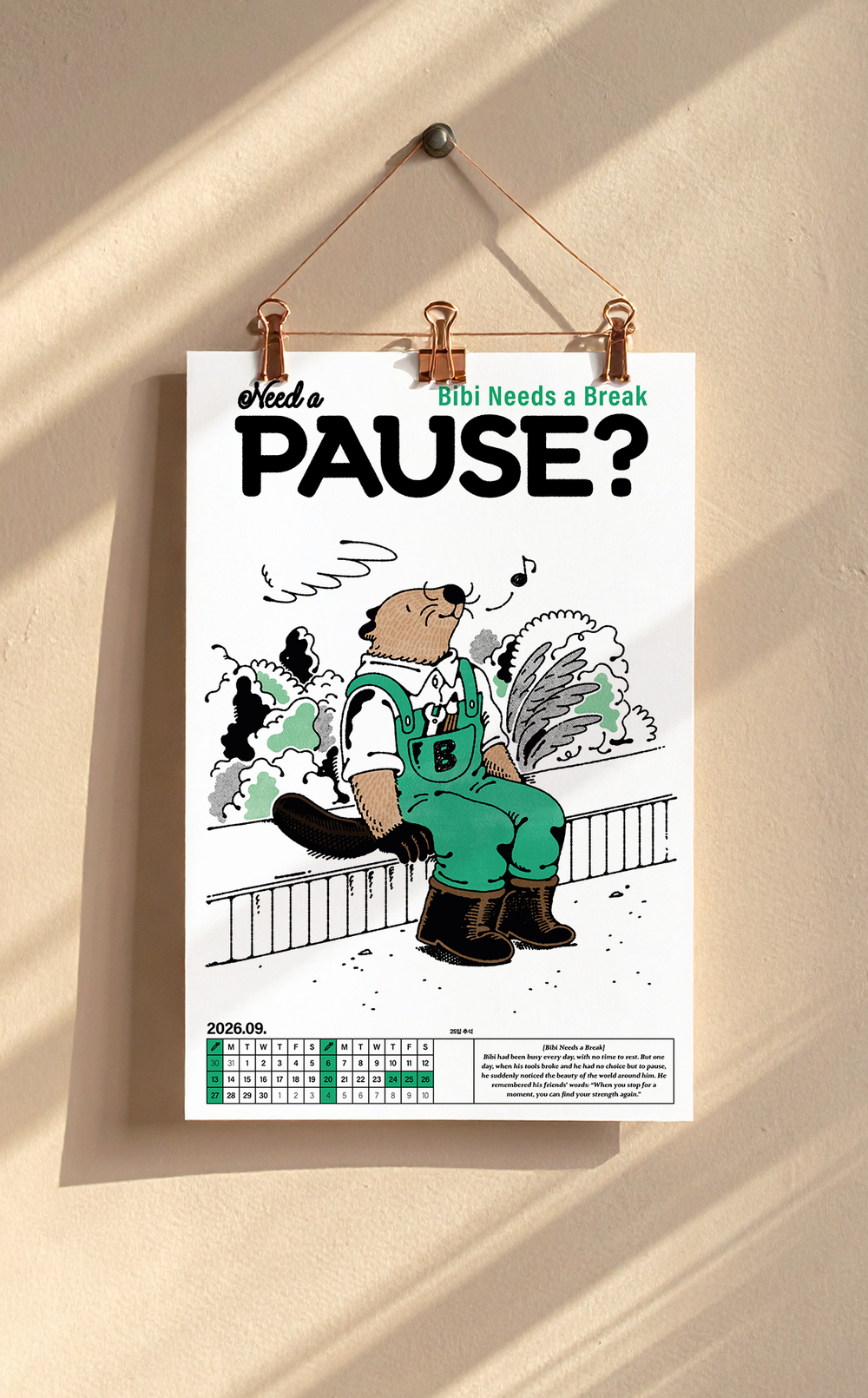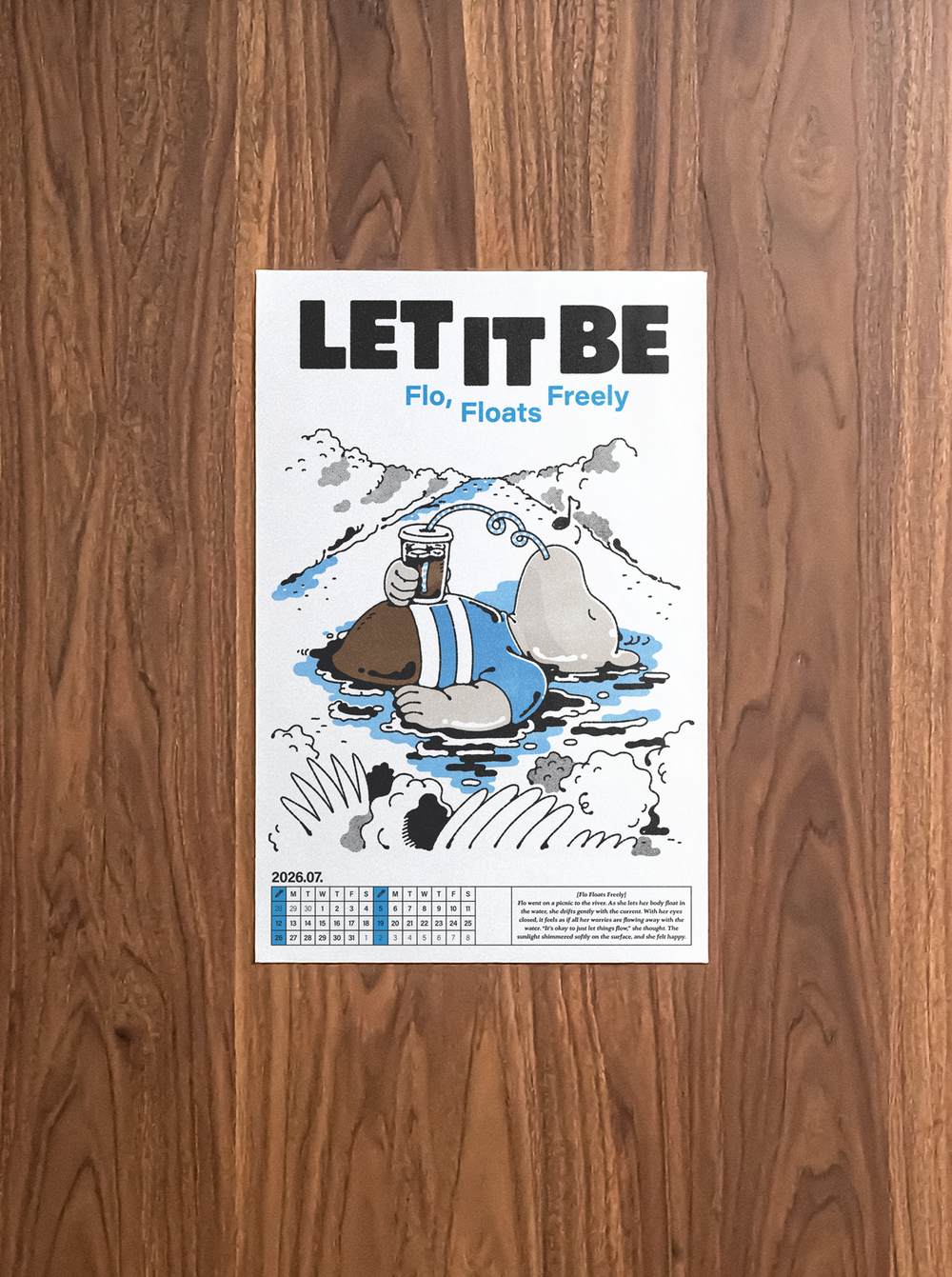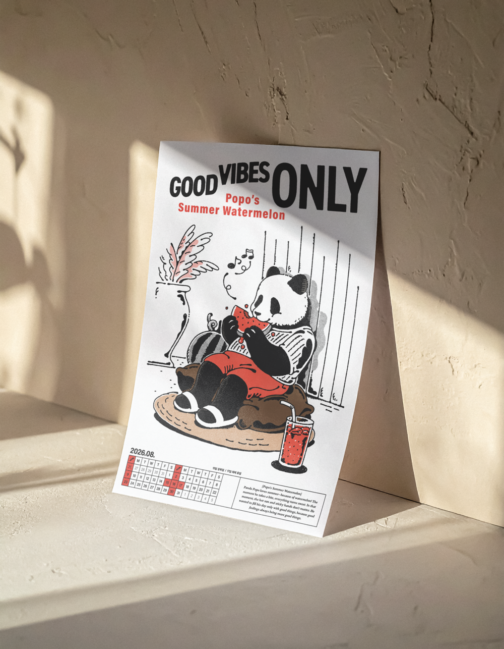 A.T.M 캘린더는 포인트 컬러와 담백한 무드의 일러스트가 포인트로, 어디에 두느냐에 따라 공간에 무난한 스며들어 배경이 되거나 공간의 포인트가 될 수도 있습니다. 낱장으로 포스터처럼 활용하셔도 좋습니다.
