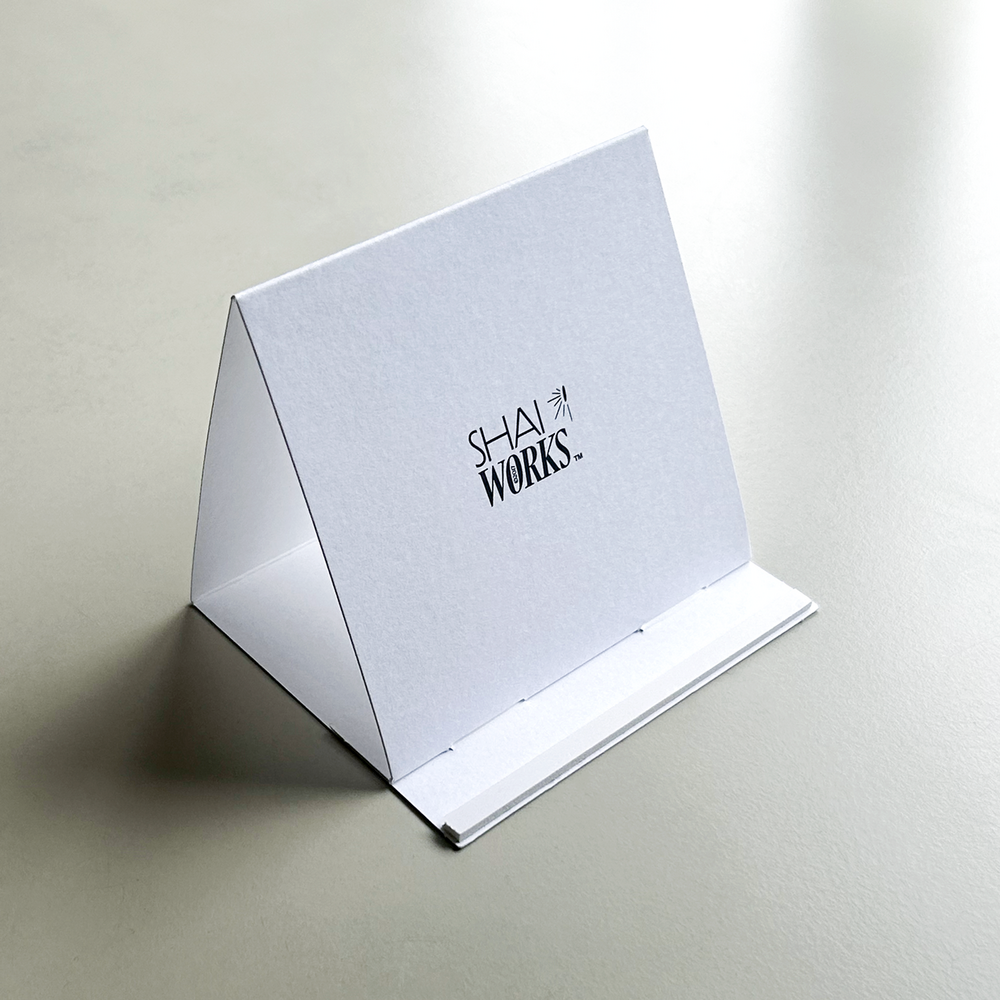 얇지 않은 190 g 지류에 인쇄해 낱장으로도 어디에든 가볍게 거치해두기 좋습니다.