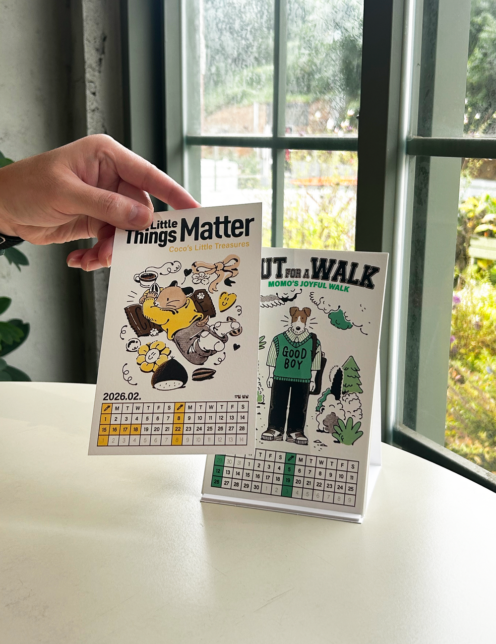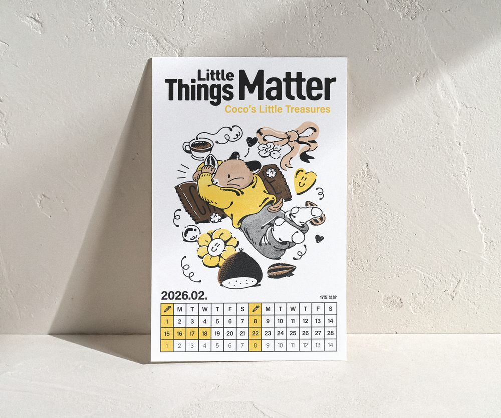 A.T.M 캘린더는 포인트 컬러와 담백한 무드의 일러스트가 포인트로, 어디에 두느냐에 따라 공간에 무난한 스며들어 배경이 되거나 공간의 포인트가 될 수도 있습니다. 낱장으로 엽서 또는 미니 포스터처럼 활용하셔도 좋습니다.