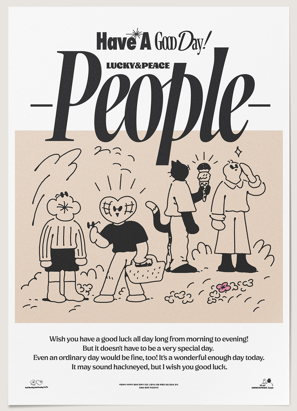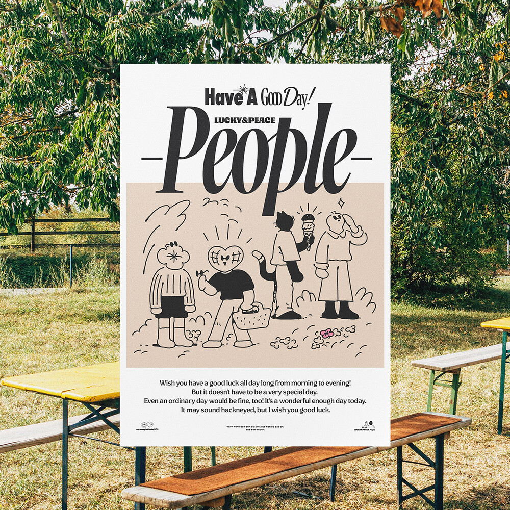 행운과 평화를 사랑하는 멋진 친구들의 즐거운 피크닉을 그린 드로잉 포스터입니다. 화창한 날씨, 좋은 친구들과 함께 멋진 하루를 보내고 있습니다. 텍스트와 드로잉이 조화로워 어디서든 포인트가 되는 포스터입니다.