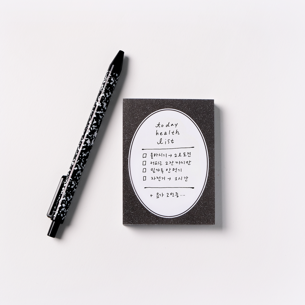 블랙 바탕에 불규칙하고 자잘한 도트질감 패턴이 포인트인 메모패드입니다. 65 x 90 mm로 마스킹테이프, 스티커 등과 다양하게 활용하기 좋습니다.