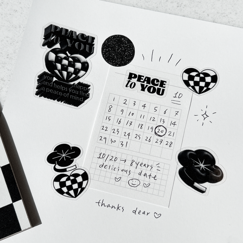 블랙 앤 화이트 그래픽에 투명패드 재질로, 컬러풀한 배경에 붙여주면 잘 어울립니다.