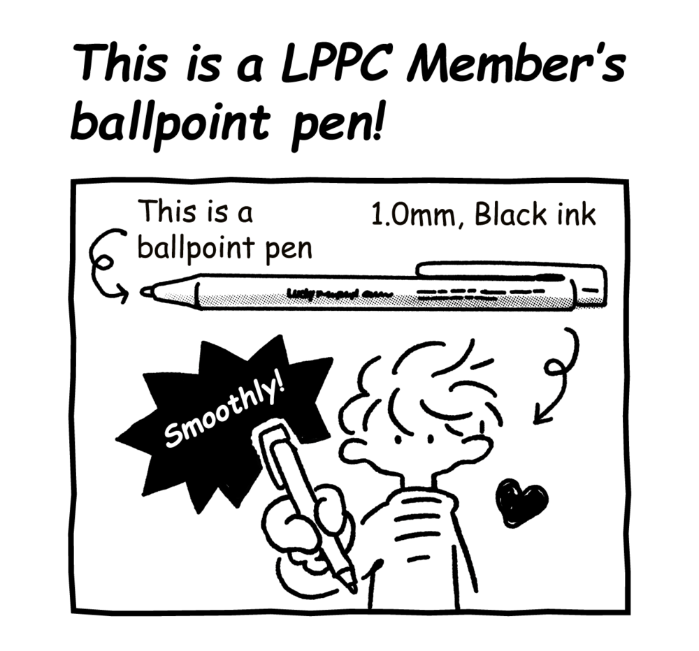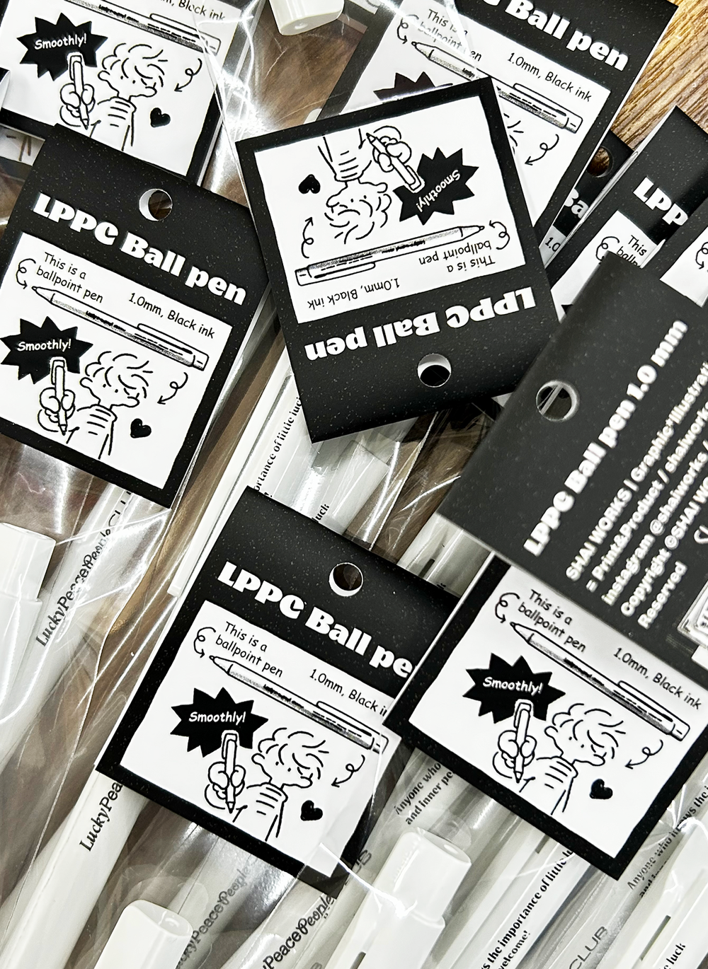 이 볼펜은 "LUCKY PEACE PEOPLE CLUB"을 홍보하기 위해 멤버들이 만든 볼펜입니다.