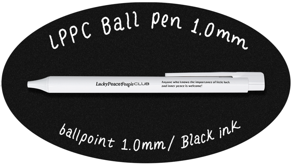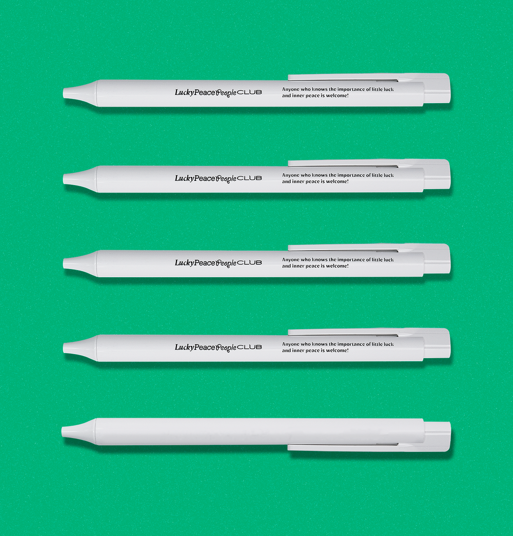 독일 Schneider사에서 만든 에센셜 볼펜 바디에 "LUCKY PEACE PEOPLE CLUB" 로고와 메세지가 새겨져 있습니다.