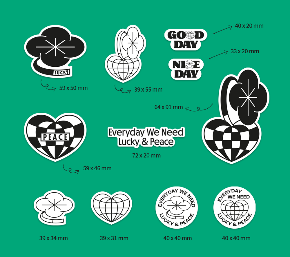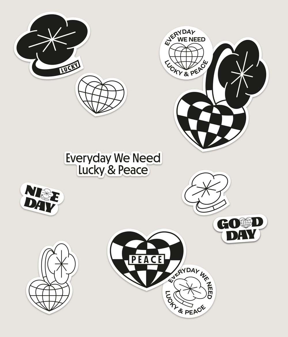 일상의 작은 행운이 모여 마음의 평화를 준다는 LPP의 생각을 메세지와 그래픽 아이콘으로 만든 스티커 11종을 담은 스티커팩입니다. 매일의 행운과 평화에 대한 메세지를 담았으니, 자주 사용하는 물건에 붙이는 일종의 행운의 부적이 될 수도 있겠네요!