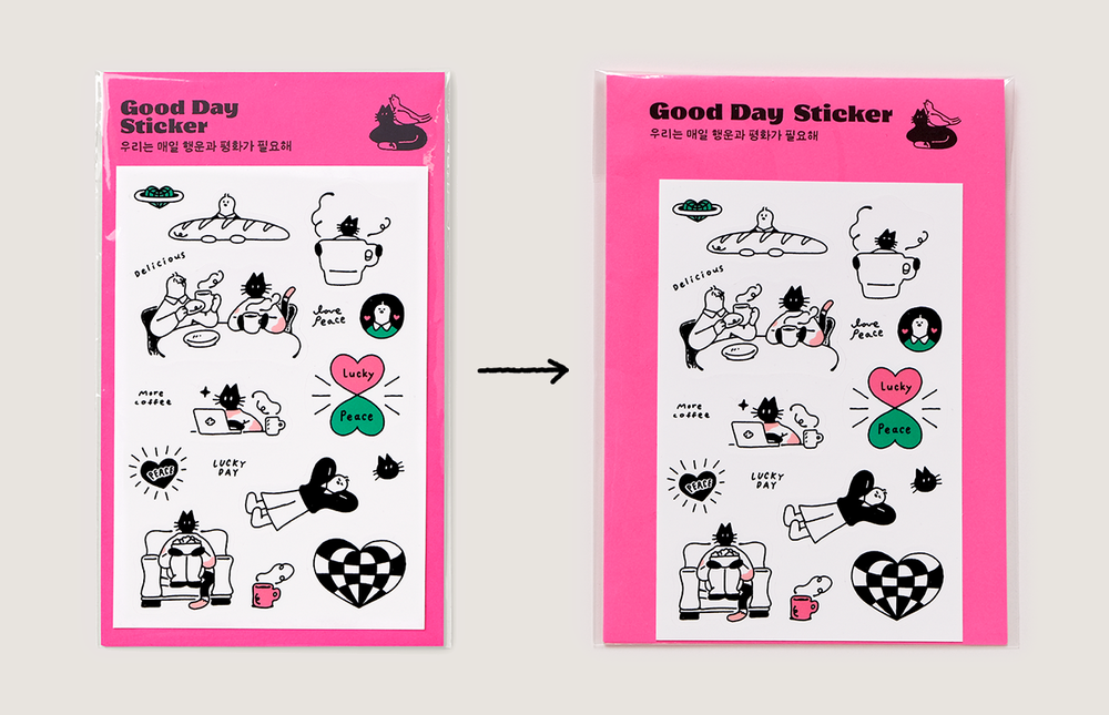 같은 시리즈인 Nice day stiker에도 다른 디자인의 그래픽 프린트가 들어있습니다. 함께 배치하면 더욱 매력적으로 활용할 수 있어