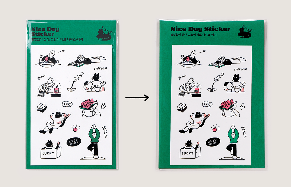 같은 시리즈인 Good day stiker에도 다른 디자인의 그래픽 프린트가 들어있습니다. 함께 배치하면 더욱 매력적으로 활용할 수 있어요.