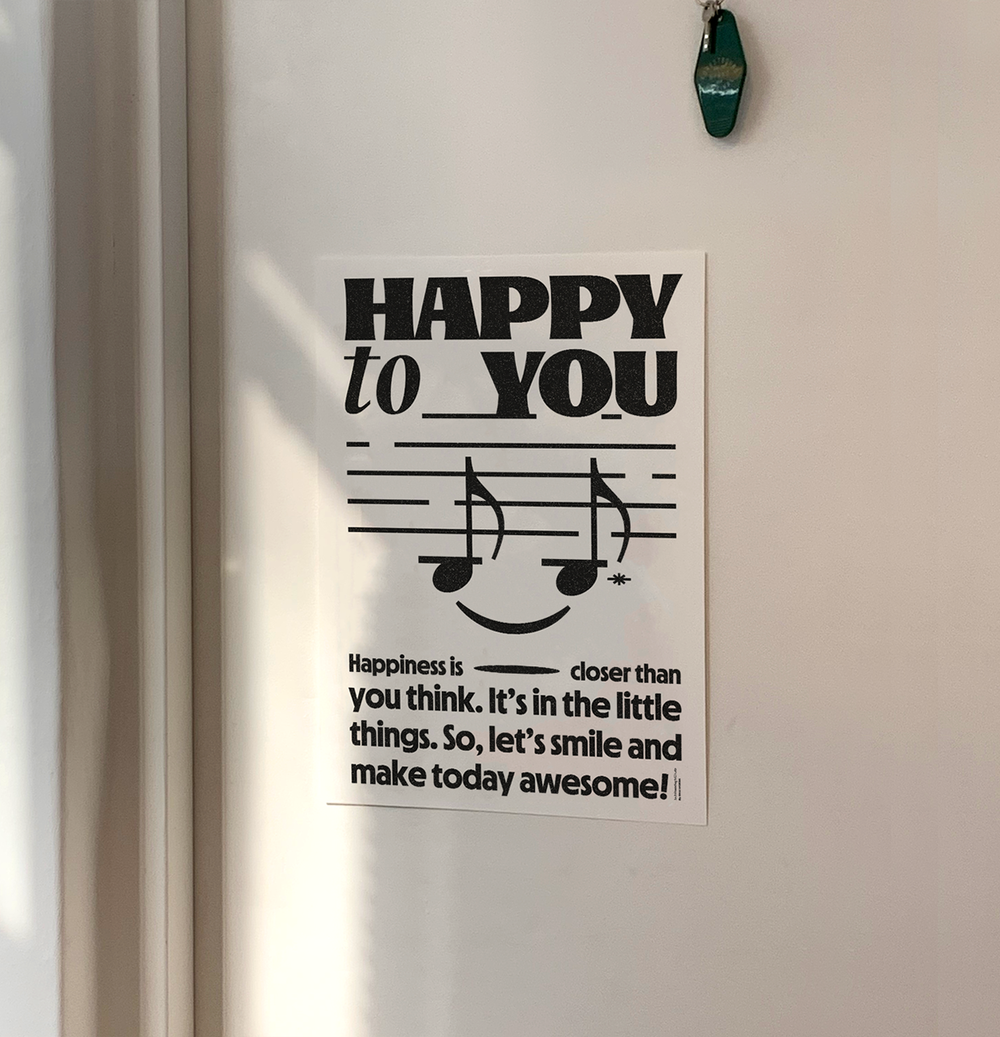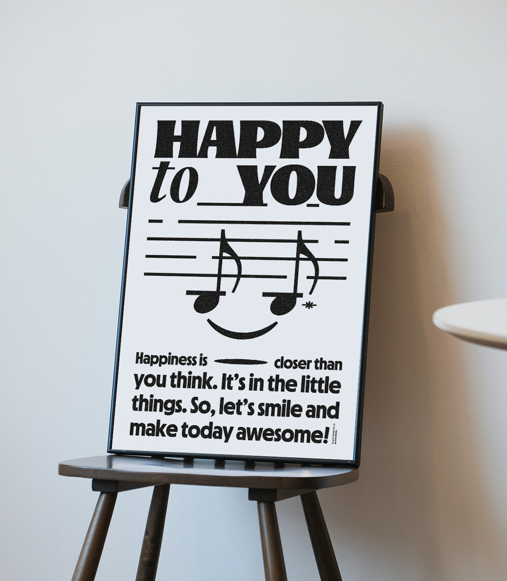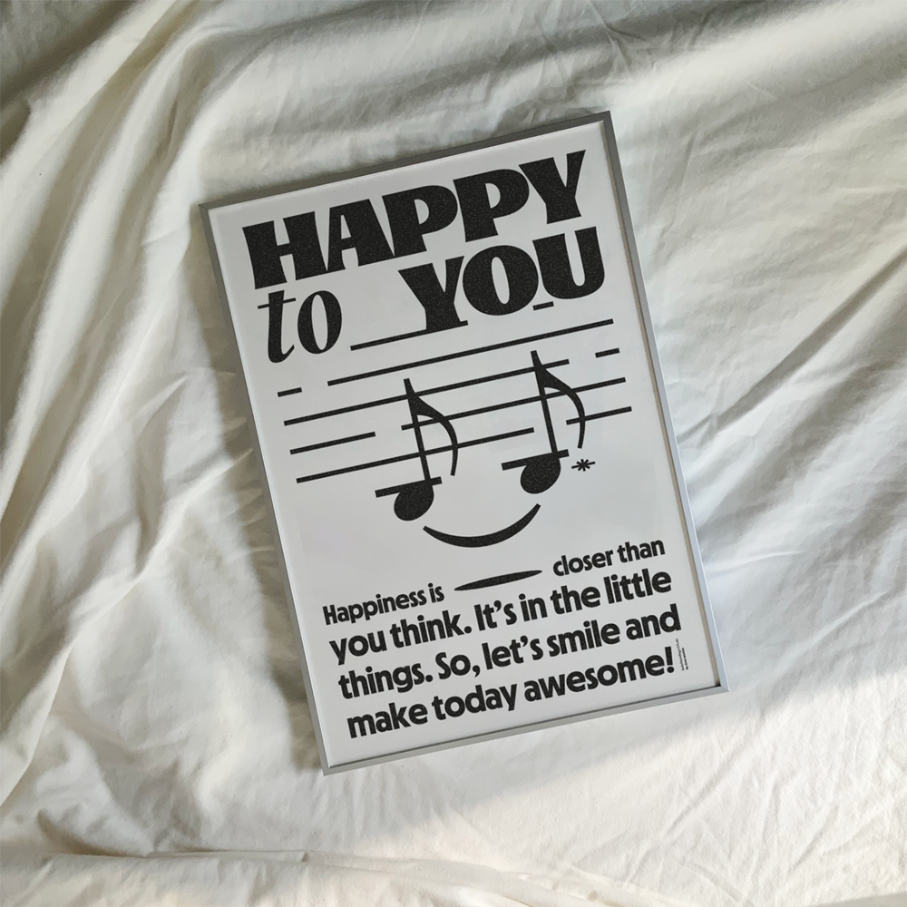 행복은 생각보다 더 가까이에, 작은 것들로 이루어져 있어요. 행복의 응원을 메세지로 담은 그래픽 포스터입니다. 행복을 전달하고 싶은 소중한 사람, 또는 누구보다도 소중한 나에게 선물하기 좋습니다. 은근한 미소로 슬쩍 보아도 기분이 좋아지는 매력적인 그래픽을 즐겨보세요.