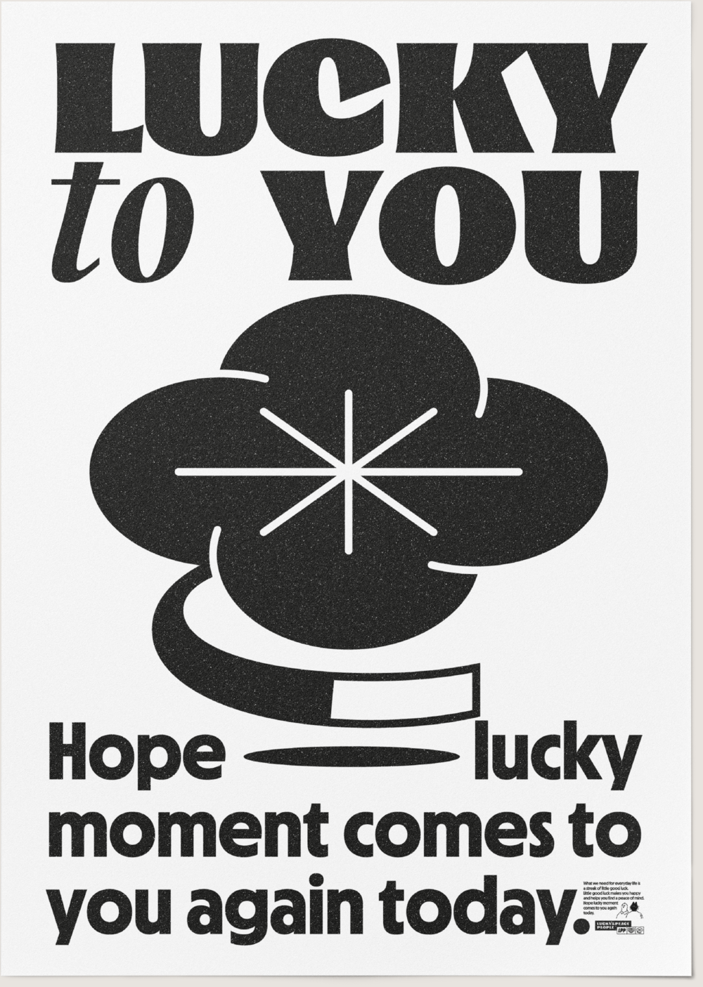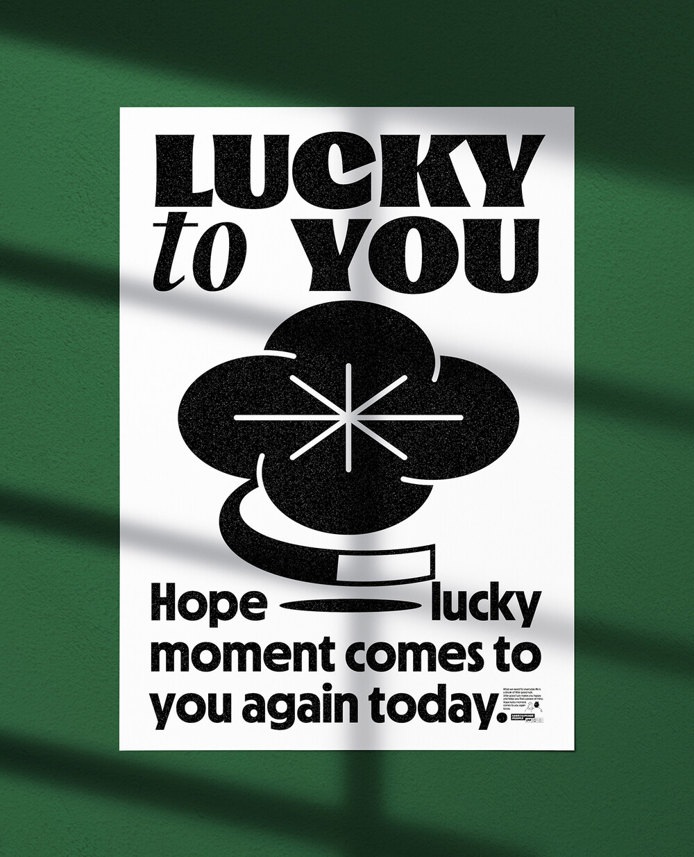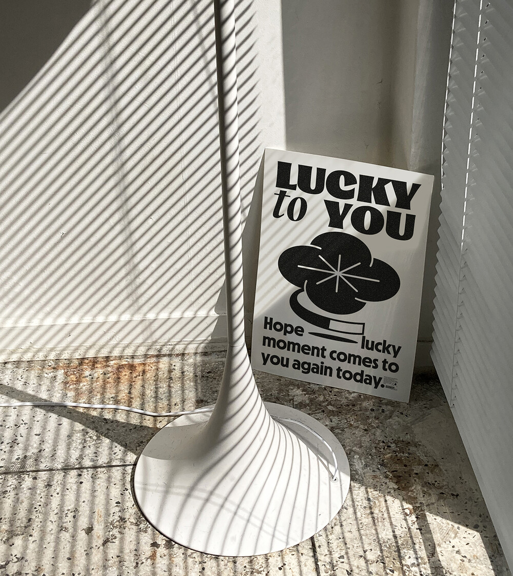 행복한 하루를 보내길 바라는 응원을, 행운의 메세지에 담은 그래픽 포스터입니다. 행운을 빌어주고 싶은 소중한 사람(또는 누구보다도 소중한 나)에게 선물하기 좋습니다. 커다란 네 잎 클로버가 보기만해도 행운이 가득한 멋진 부적이 되어줄 것입니다.