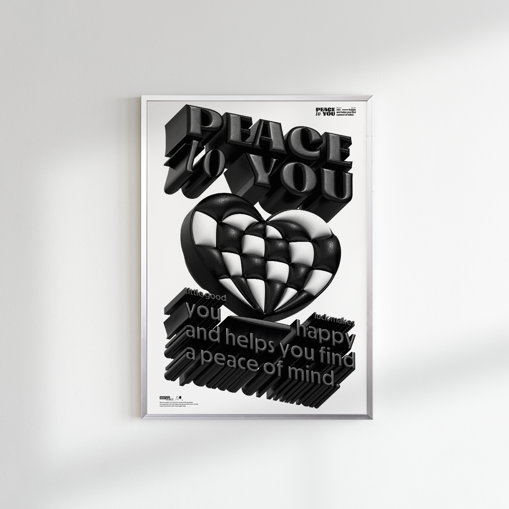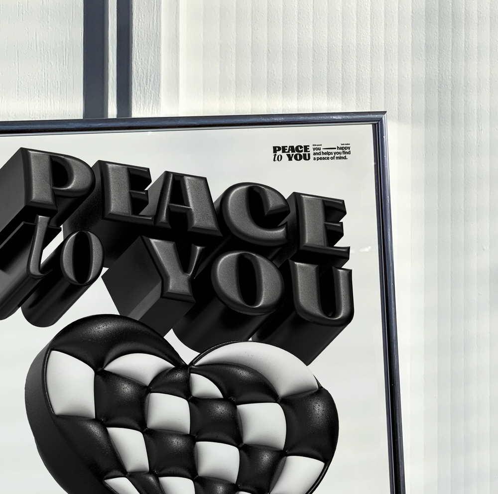 평화의 아이콘을 그린 [Peace to you] 그래픽 포스터를 입체감있는 3D 그래픽으로 재해석한 포스터입니다. 평화를 사랑하는 사람 누구에게나 좋은 선물이 될 수 있습니다. 임팩트있는 볼드한 그래픽이 포인트로, 입체감 있는 이미지가 어떤 공간에서든 존재감을 드러낼 것 입니다.