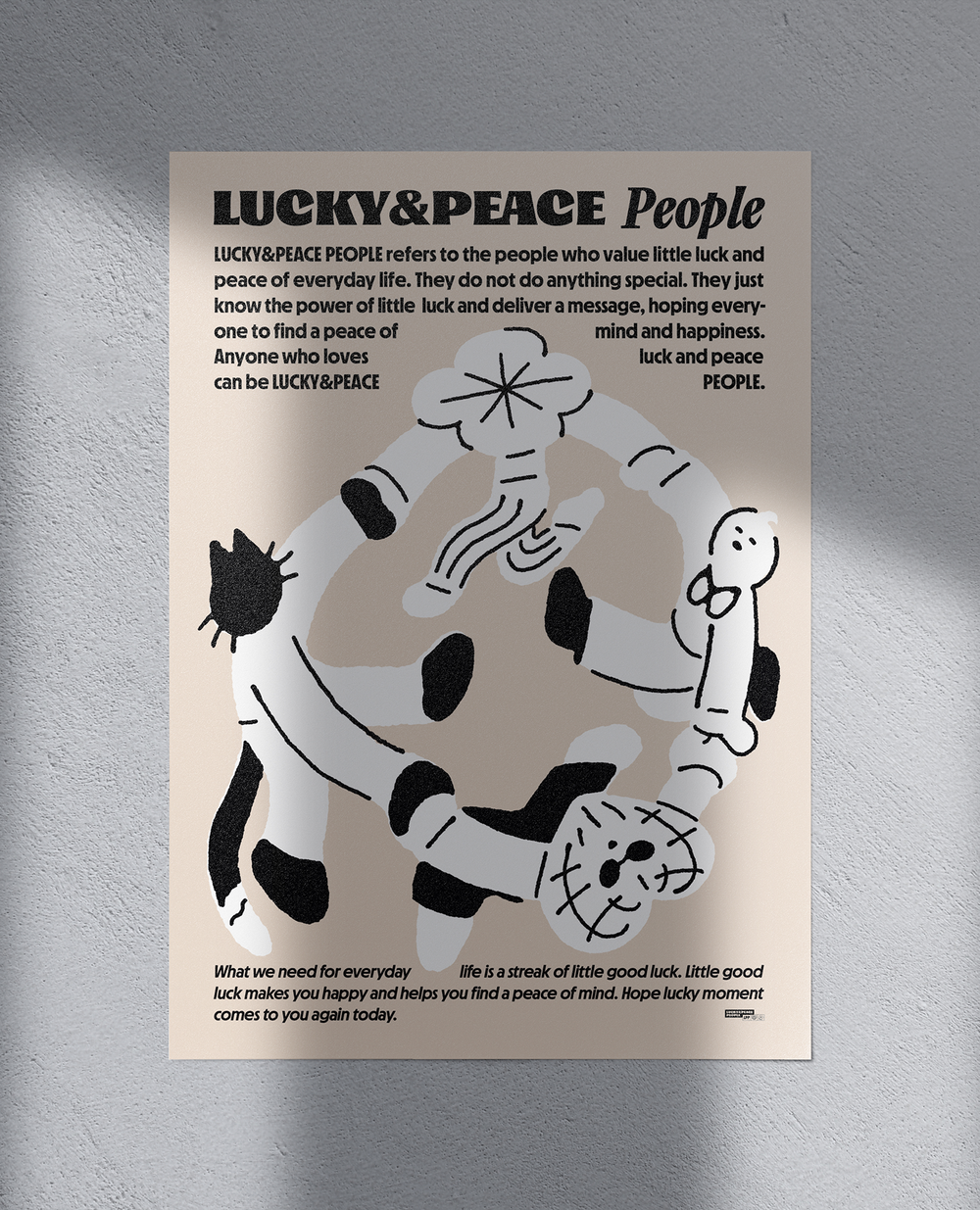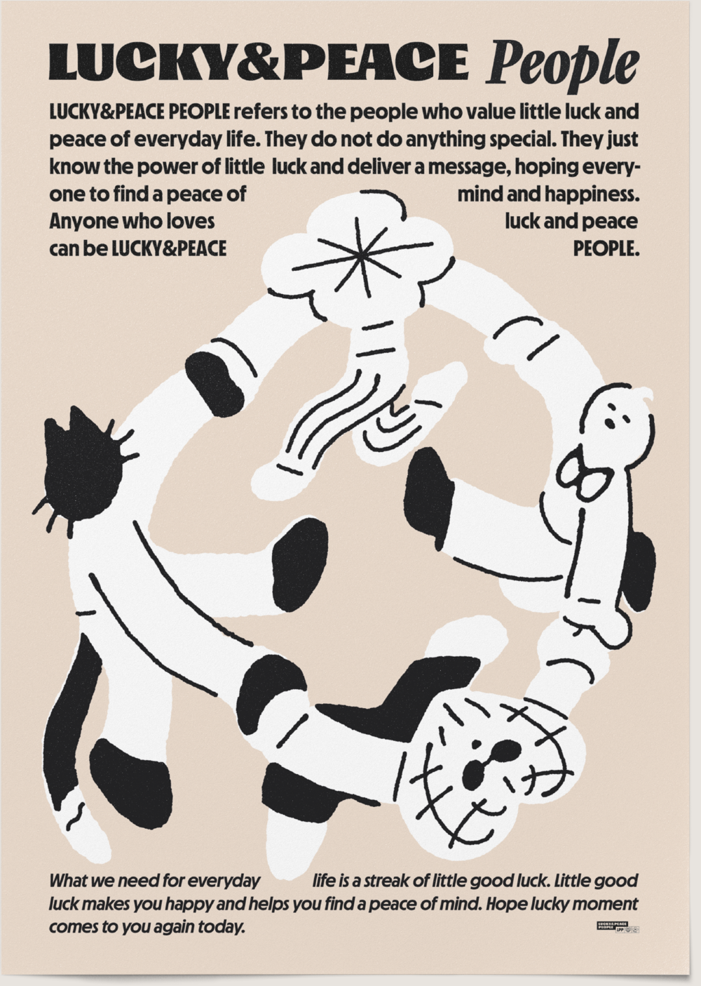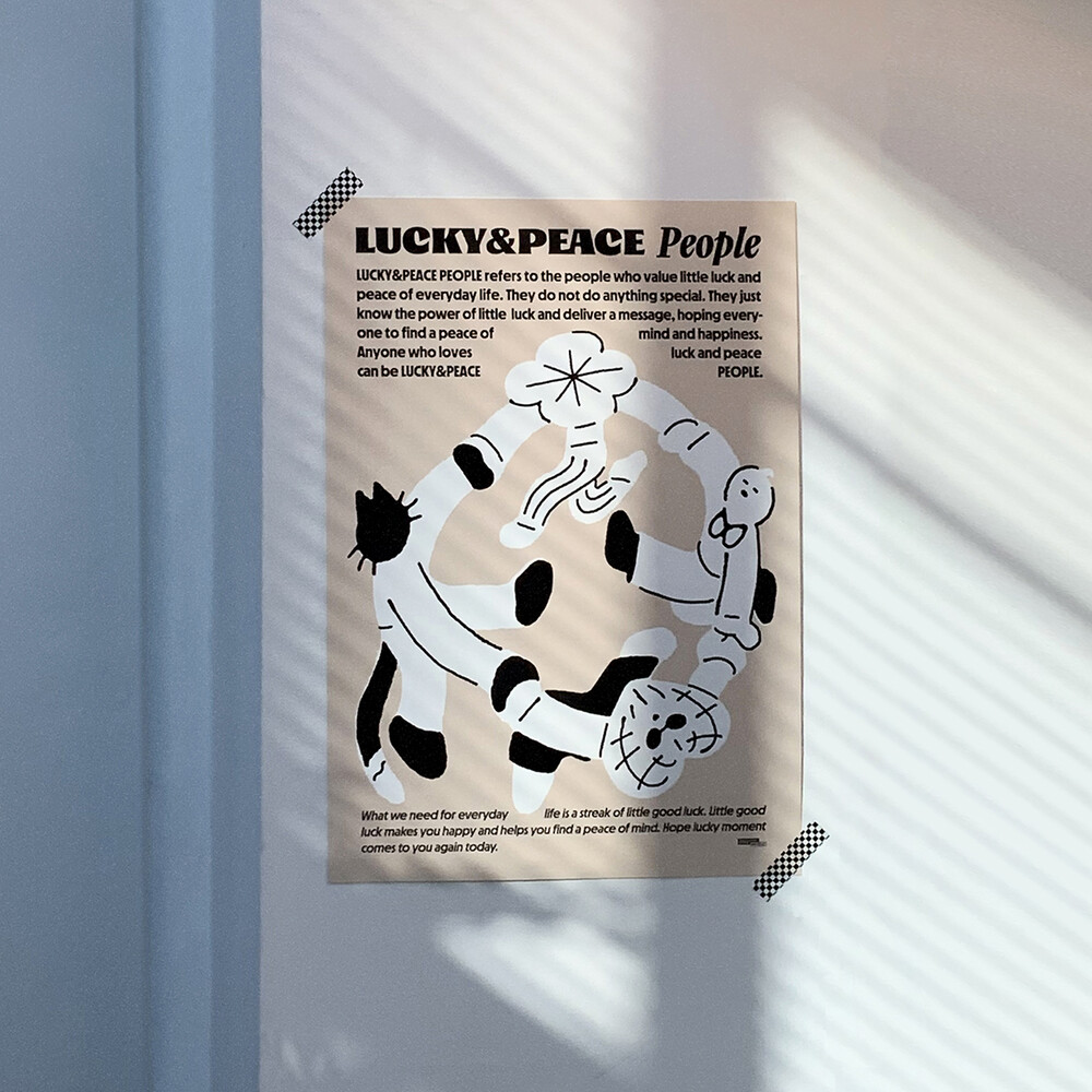 LUCKY&PEACE PEOPLE refers to the people who value little luck and peace of everyday life. They do not do anything special. They just know the power of little luck and deliver a message, hoping everyone to find a peace of mind and happiness. Anyone who loves luck and peace can be LUCKY&PEACE PEOPLE.