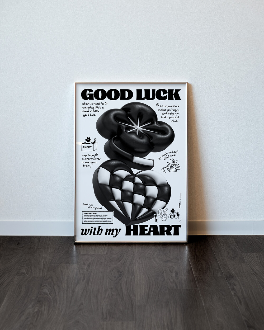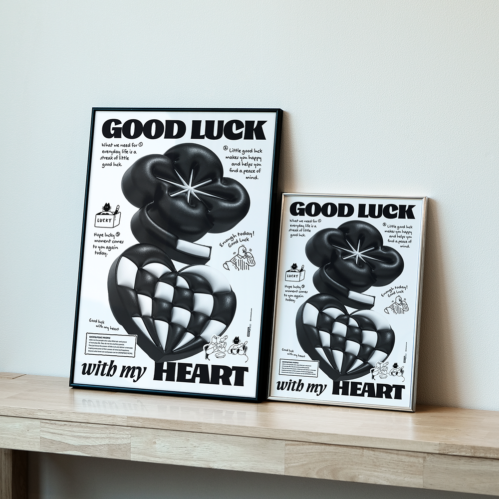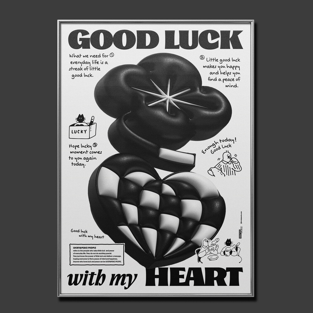 온 마음이 행운으로 가득하길 바라며 만든 3D 그래픽 포스터입니다. 행운과 평화의 아이콘을 입체감있는 3D 그래픽으로 만들어 보다 풍성하고 임팩트있게 표현하였습니다. 올록볼록 볼드한 그래픽에 귀여운 드로잉을 배치해 존재감 있는 포스터를 만들었습니다.