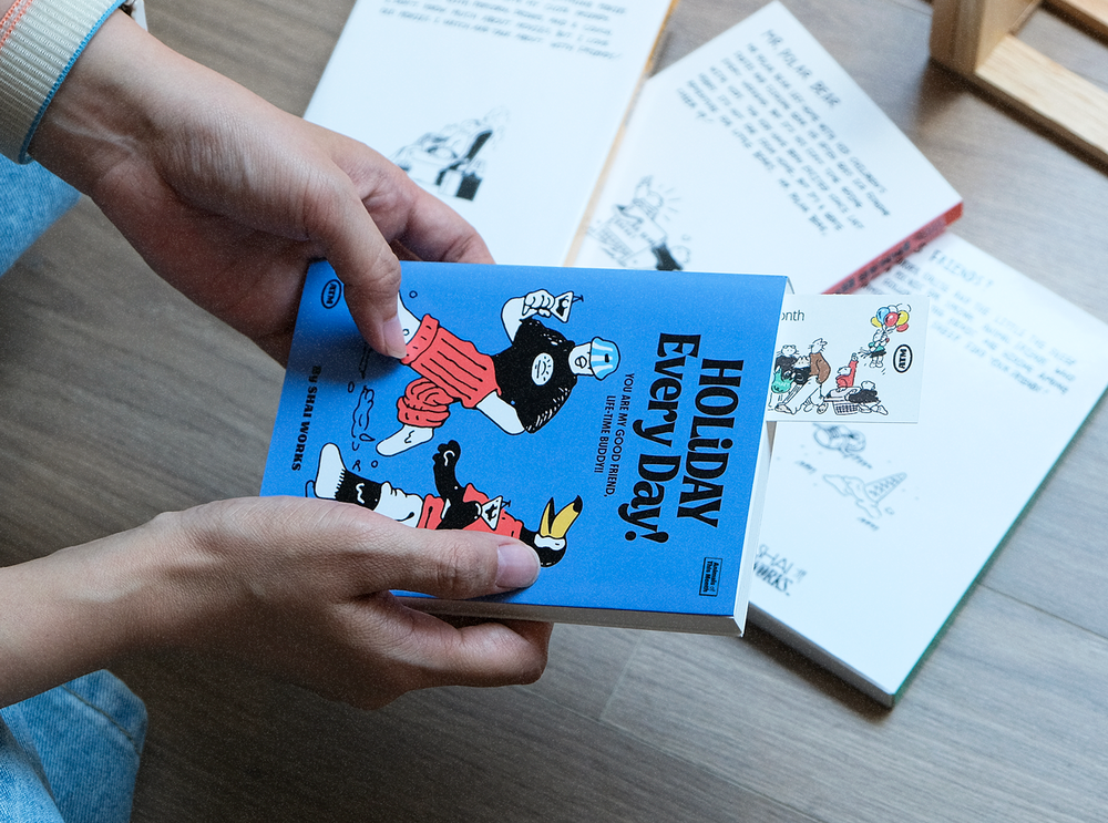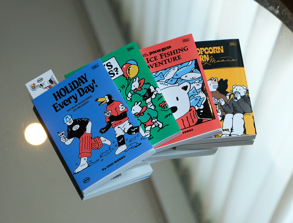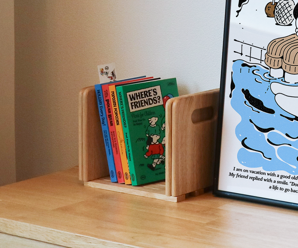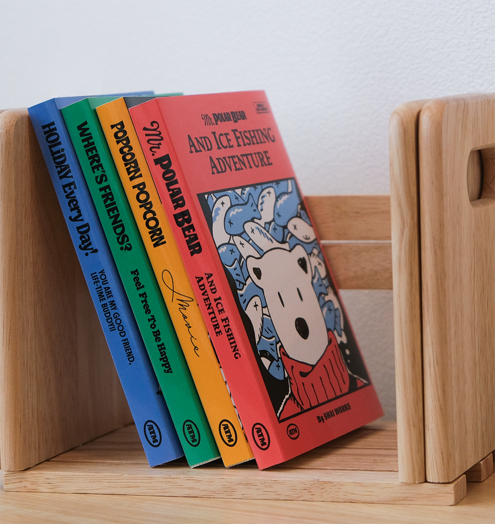 기존의 A.T.M 포스터 일러스트와 비교하면 러프한 드로잉이 매력적입니다. 4권 세트로 꽂아두면 인테리어 오브제로도 좋습니다.