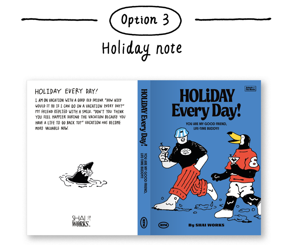 컬러풀한 디자인으로 경쾌함을 더한 드로잉 커버가 포인트인 무지 노트입니다. [2023 A.T.M 캘린더] 2월, 5월, 8월, 12월의 동물들이 주인공입니다.