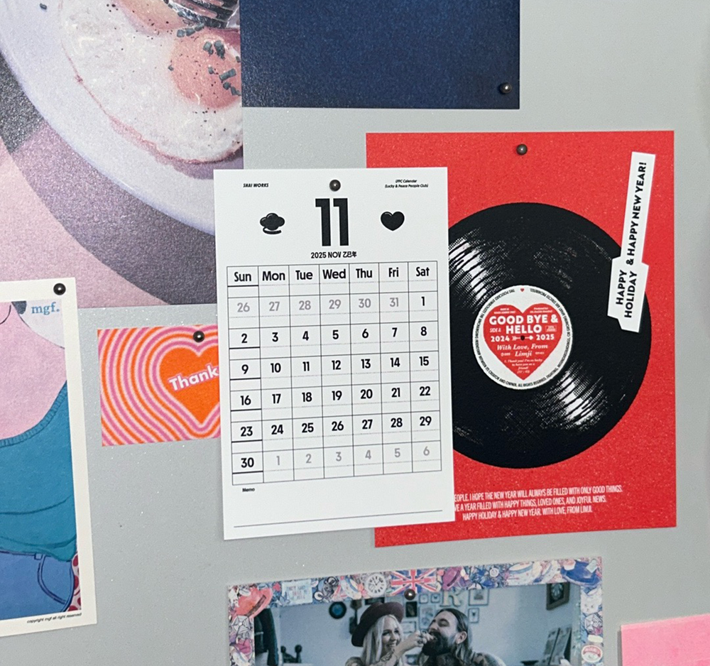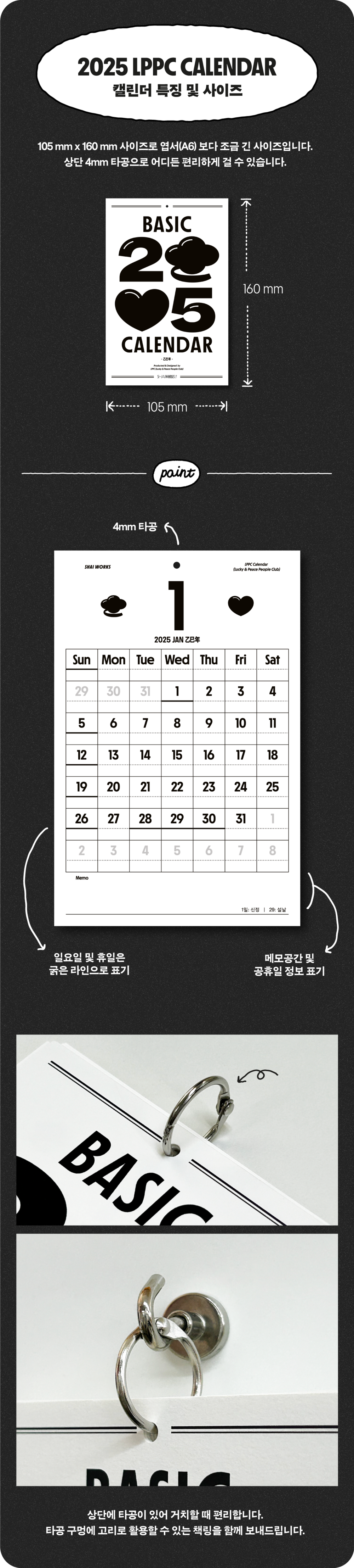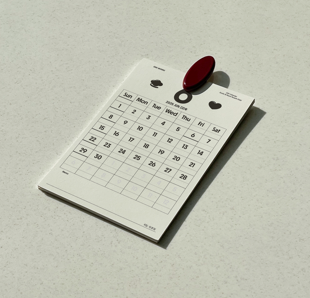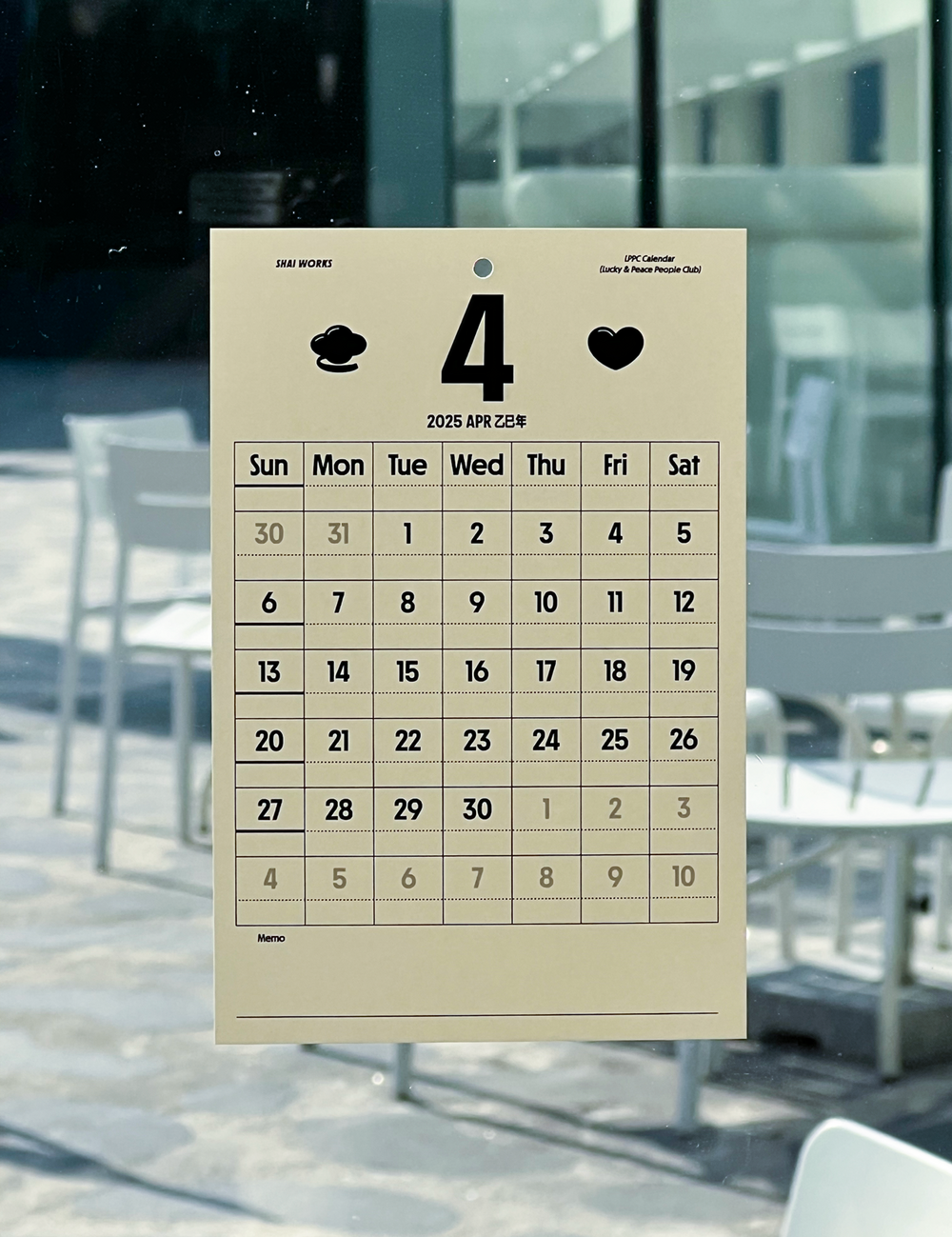 럭키 피스 피플 클럽(Lucky Peace People Club / LPPC)의 아이콘을 심플하게 활용한 베이직 미니 캘린더입니다.