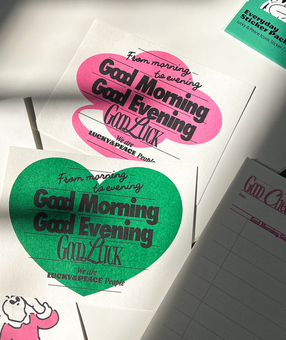 Good Morning Good Evening Good luck. 아침부터 저녁까지, 행운을 빌어요!